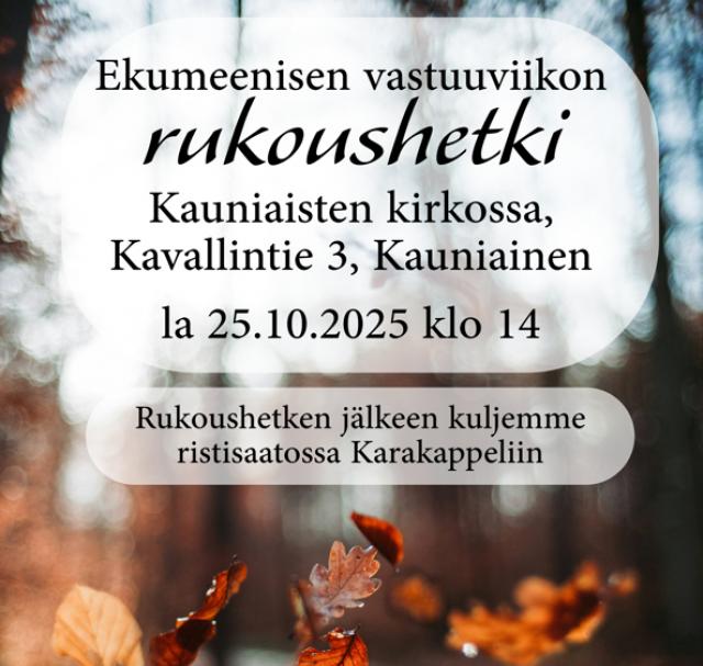 Inkommande söndag den 13 oktober kl. 11: gudstjänst med predikan av Andreas Forsbäck, söndagsskolan Söndax för barnen, parallellt med gudstjänsten. Kyrkkaffe efter gudstjänsten. Välkommen med!